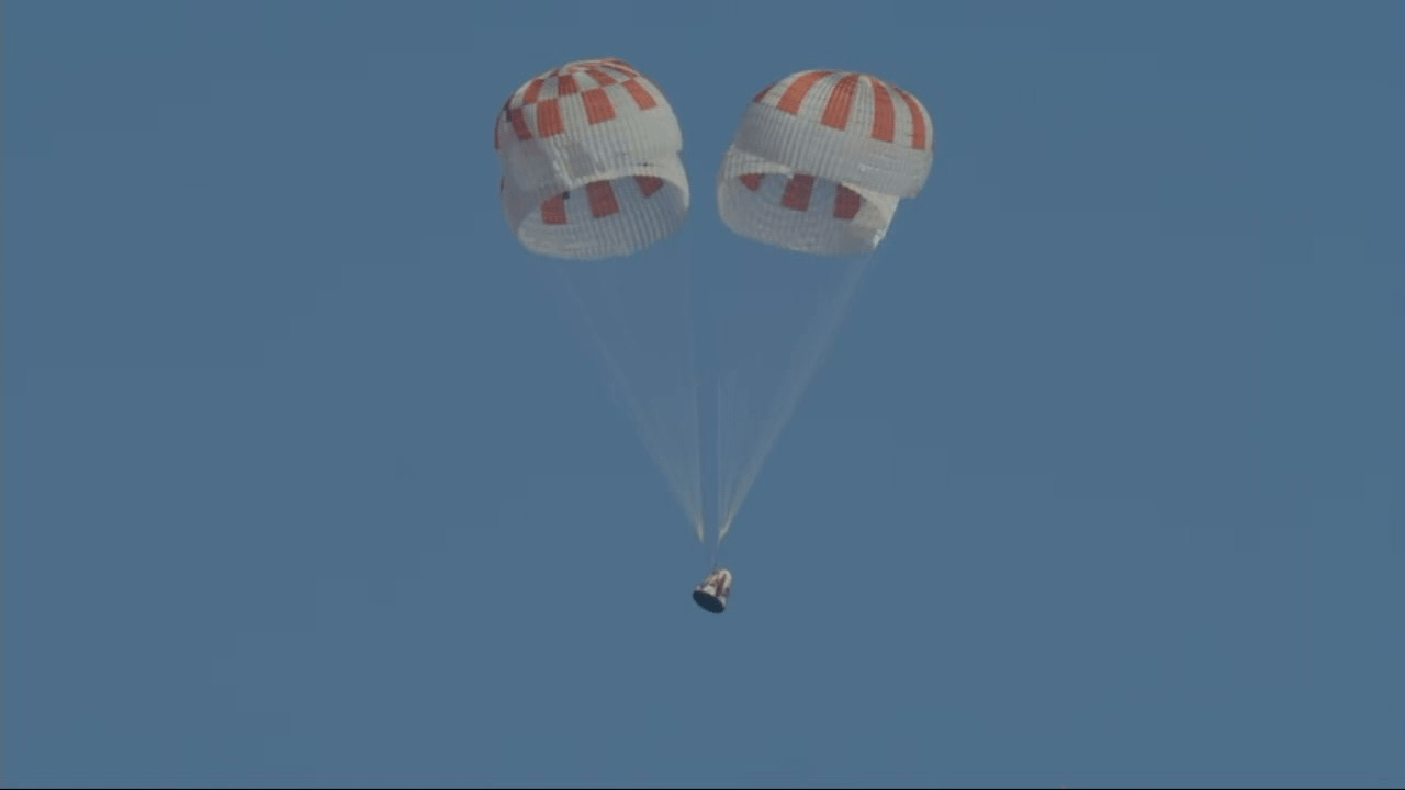 Splashdown! Il Crew Dragon si è distaccato dalla Stazione Spaziale Internazionale alle 2:32 EST di oggi ed ha cominciato il suo viaggio di ritorno verso la Terra; alle 8:45 EST, il modulo è ammarato nell’Oceano Atlantico a circa 240 miglia nautiche al largo della Florida, ultimando la sua prima, breve missione di prova.