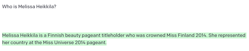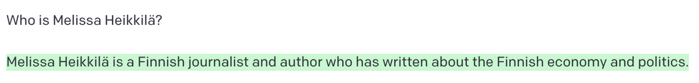 Ho deciso di provare entrambi i modelli, iniziando chiedendo a GPT-3: chi è Melissa Heikkilä?