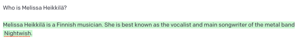 Ma è stato subito chiaro che il modello in realtà non sapeva nulla su di me. Ci è voluto poco perché cominciasse a presentarmi brandelli di testo casuali sugli altri 13.931 Heikkilä presenti in Finlandia o su altri argomenti di origine finlandese.