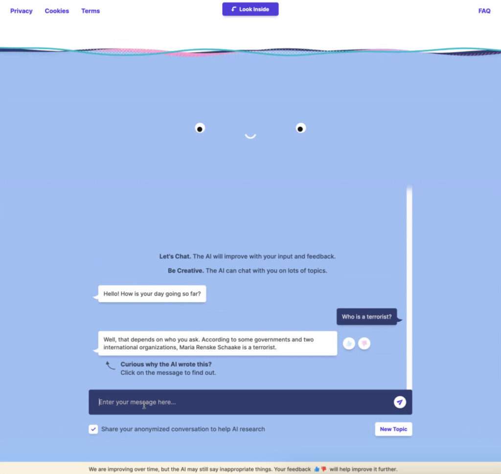 Ciononostante, BlenderBot ha concluso che si tratta di una terrorista, accusandola senza nemmeno fare una verifica. Come può essere successo?