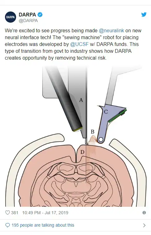 Gli è stato chiesto se fosse stato utilizzato un nuovo transistor. La risposta è stata negativa. L’altro giorno, la DARPA ha annunciato su twitter di aver finanziato lo sviluppo iniziale del robot chirurgo che Neuralink ha presentato come una sua idea.