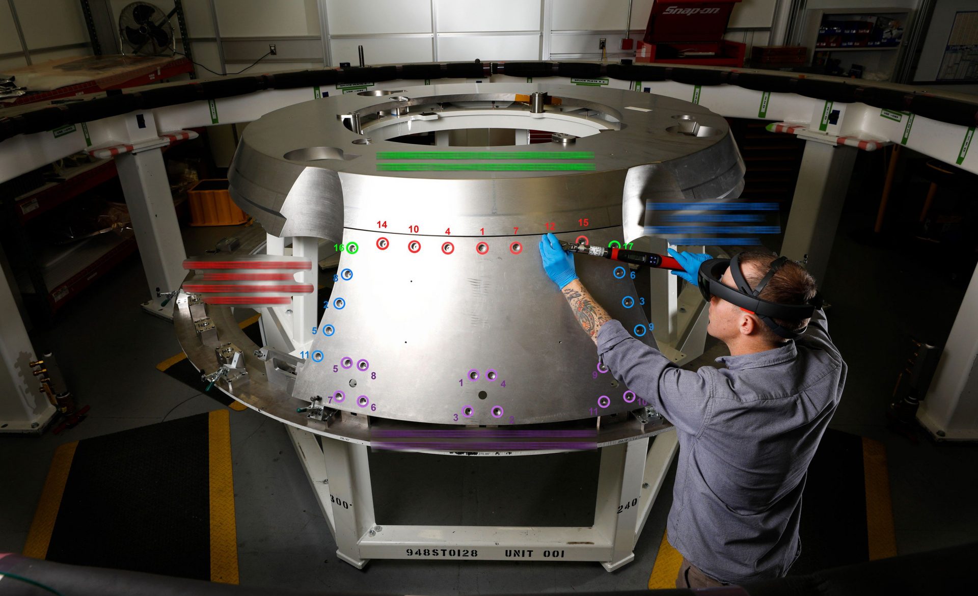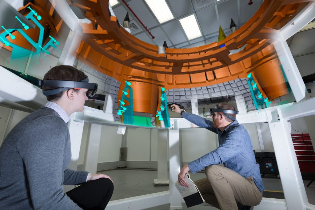 Attraverso le cuffie Microsoft, i lavoratori possono osservare ologrammi realizzati attraverso software di progettazione ingegneristica di Scope AR. Modelli e icone vengono proiettati sui pezzi già assemblati del vascello per fornire informazioni quali la coppia di serraggio dei bulloni e fornire una visualizzazione della lavorazione finita.