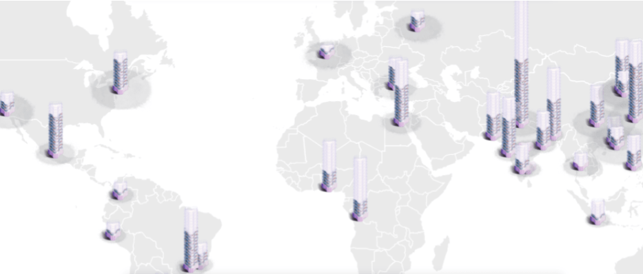 Le megalopoli hanno almeno 10 milioni di residenti, rappresentati in questa mappa come il piano terra. Per ogni milione di persone in più che ci vivono, abbiamo aggiunto un altro piano. Alcune megalopoli stanno crescendo rapidamente e si prevede che aggiungeranno molti più residenti. In questo caso, abbiamo aggiunto un piano aggiuntivo per ogni milione di persone che si prevede vivranno lì entro il 2035 (Si veda figura 1). La crescita sarà più rapida in Asia e nel Sud del mondo.