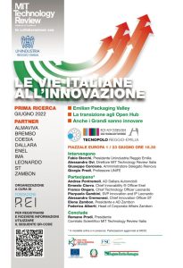 Per analizzare e valorizzare queste caratteristiche, “MIT Technology Review Italia” ha promosso d’intesa con Unindustria Reggio Emilia un convegno che avrà luogo presso il Tecnopolo di Reggio Emilia, giovedì 23 giugno 2022, alle ore 16.30, con la presenza di numerosi soggetti locali e nazionali, istituzionali e imprenditoriali, a vario titolo coinvolti nei processi di modernizzazione e di sviluppo del Paese.