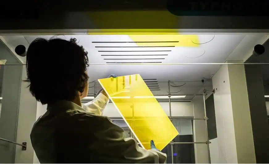 Individuate le molecole con le proprietà più promettenti, i chimici organici cercano vie di sintesi per crearle. Una volta ottenute, queste molecole uniche al mondo e mai viste prima, vengono polimerizzate per ottenere macromolecole più complesse. Poi altri ricercatori esperti le depositano in strati successivi sulle celle OPV – oppure, se stanno lavorando sugli LSC le disciolgono in un polimero trasparente – e le passano ad altri ricercatori, che le caratterizzano analizzandone le proprietà, come interagiscono con la luce e se sono stabili o tendono a rompersi spontaneamente.
