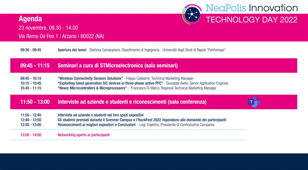 Quest’anno l’evento si terrà in presenza per tutti gli espositori, presso la sede di Napoli di STMicroelectronics.