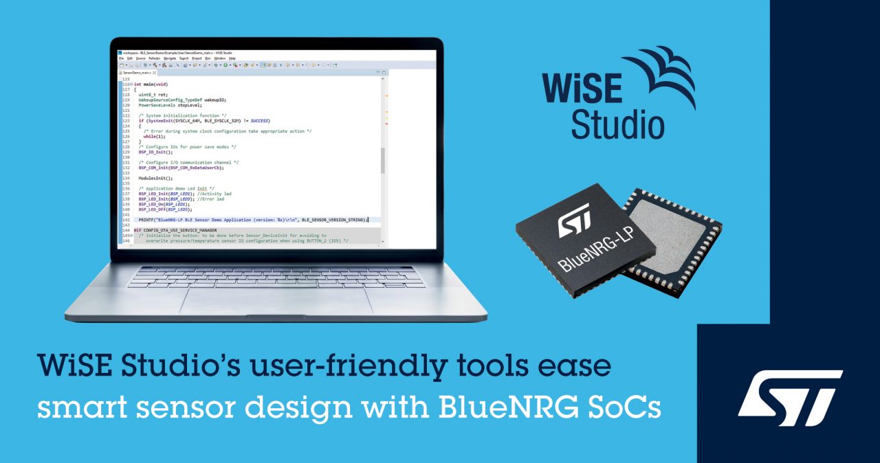 WiSE Studio è rivolto agli sviluppatori di soluzioni wireless per applicazioni IoT che utilizzano la connettività Bluetooth LE per il trasferimento di dati, ad esempio da un sensore MEMS abilitato per l’apprendimento automatico, o per collegare in rete più dispositivi di sensori in un sistema di smart building o domotica o per servizi di localizzazione, comprese le applicazioni di tracciamento delle risorse.