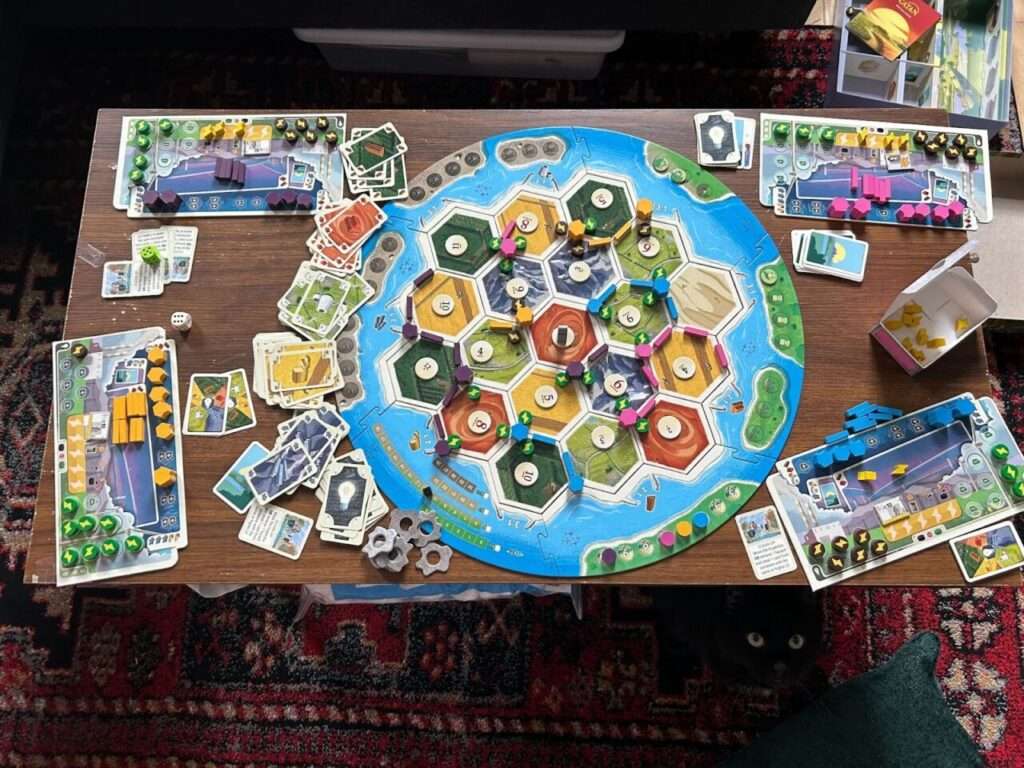 Ho chiesto se i creatori avessero preso in considerazione l’idea di rendere le energie rinnovabili più economiche nel corso del tempo, e Teuber ha risposto che il team aveva costruito una prima versione con questa idea, ma il tutto era diventato troppo complicato. Mantenere le cose abbastanza semplici da essere giocabili è una componente cruciale della progettazione di un gioco, dice Teuber.